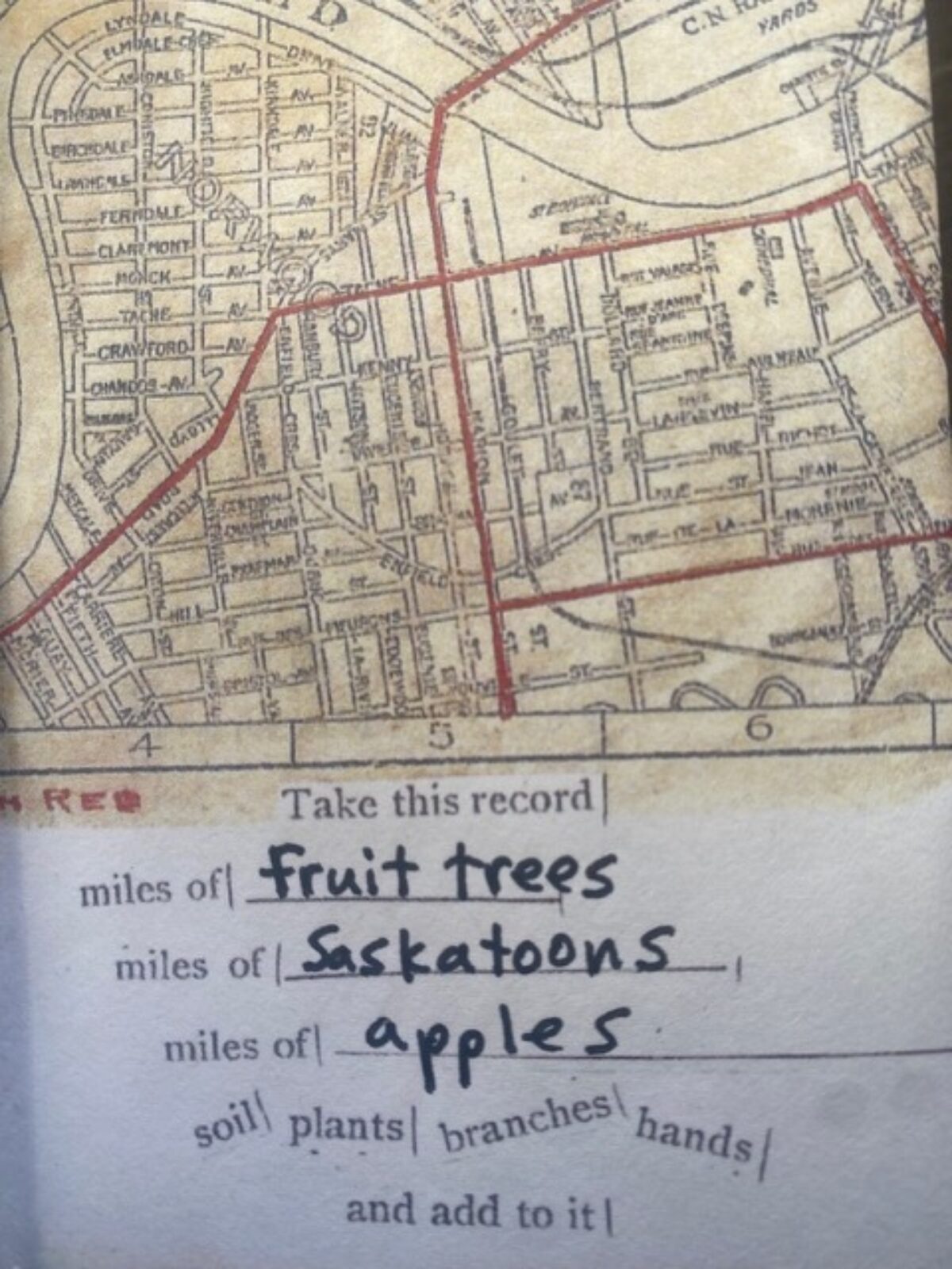 1. Take a map-book and fill in the blanks with words, drawings, alterations, additions, or….? This is your space to say what you like about our city! You can identify yourself, be anonymous, use a pseudonym—whatever you like.