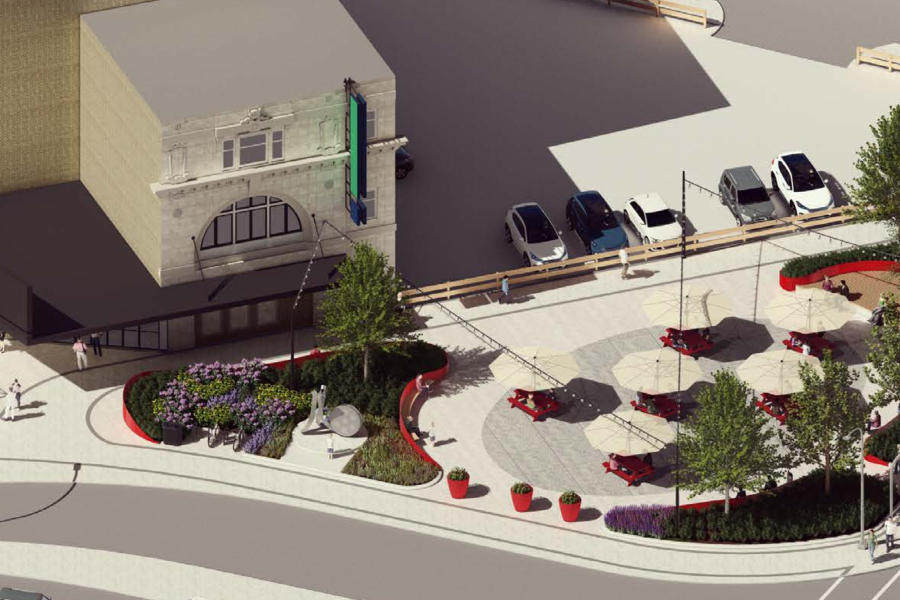It was created as part of the development of a new public space designed to be both a lively festival site and a peaceful urban oasis, welcoming people to gather, relax, and celebrate.
