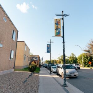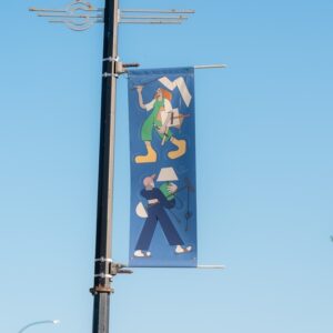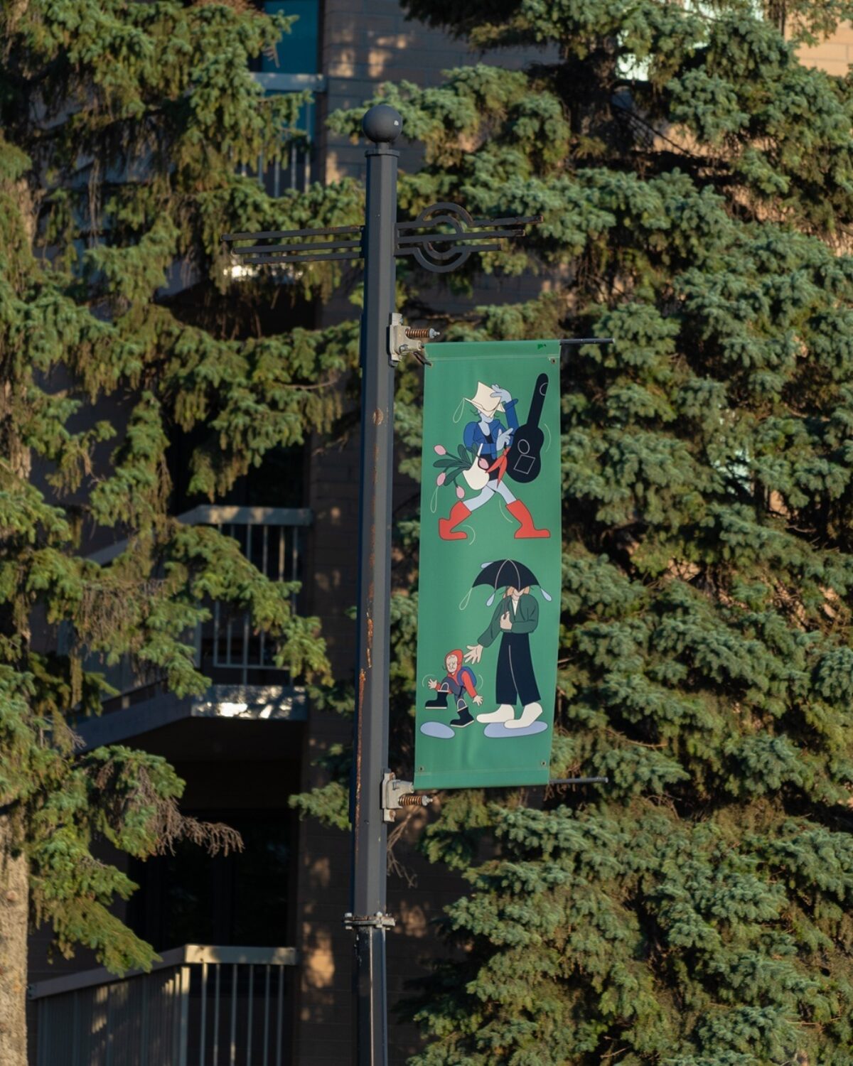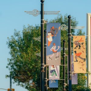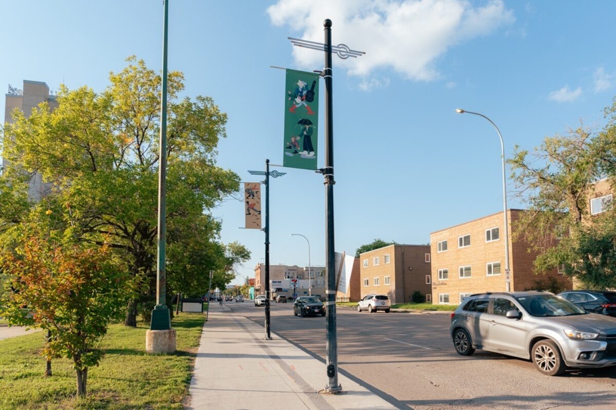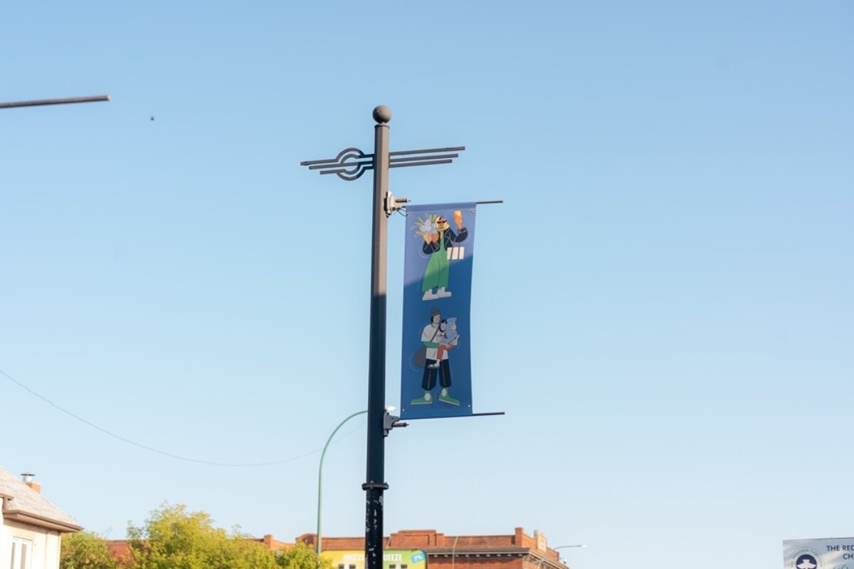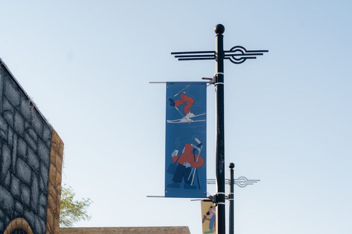These 22 street banners — designed by Cato Cormier — reflect the energy and spirit of the South Osborne neighbourhood in Winnipeg. The banners will be installed for at least two years as part of a partnership between the Winnipeg Arts Council and the South Osborne BIZ. This project aims to celebrate the unique character of South Osborne — a cozy, walkable area filled with vibrant community life. The artwork is meant to draw people in, encouraging them to explore the area and connect with community.