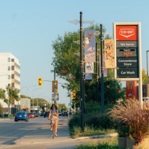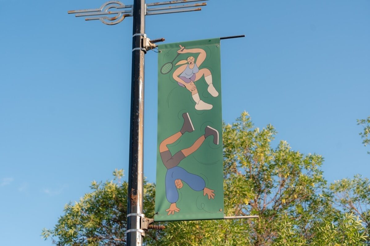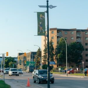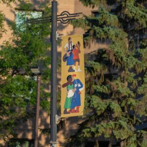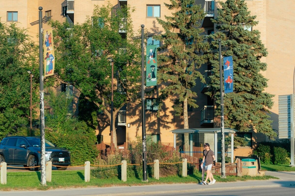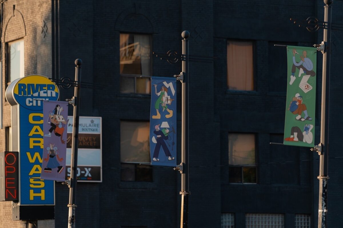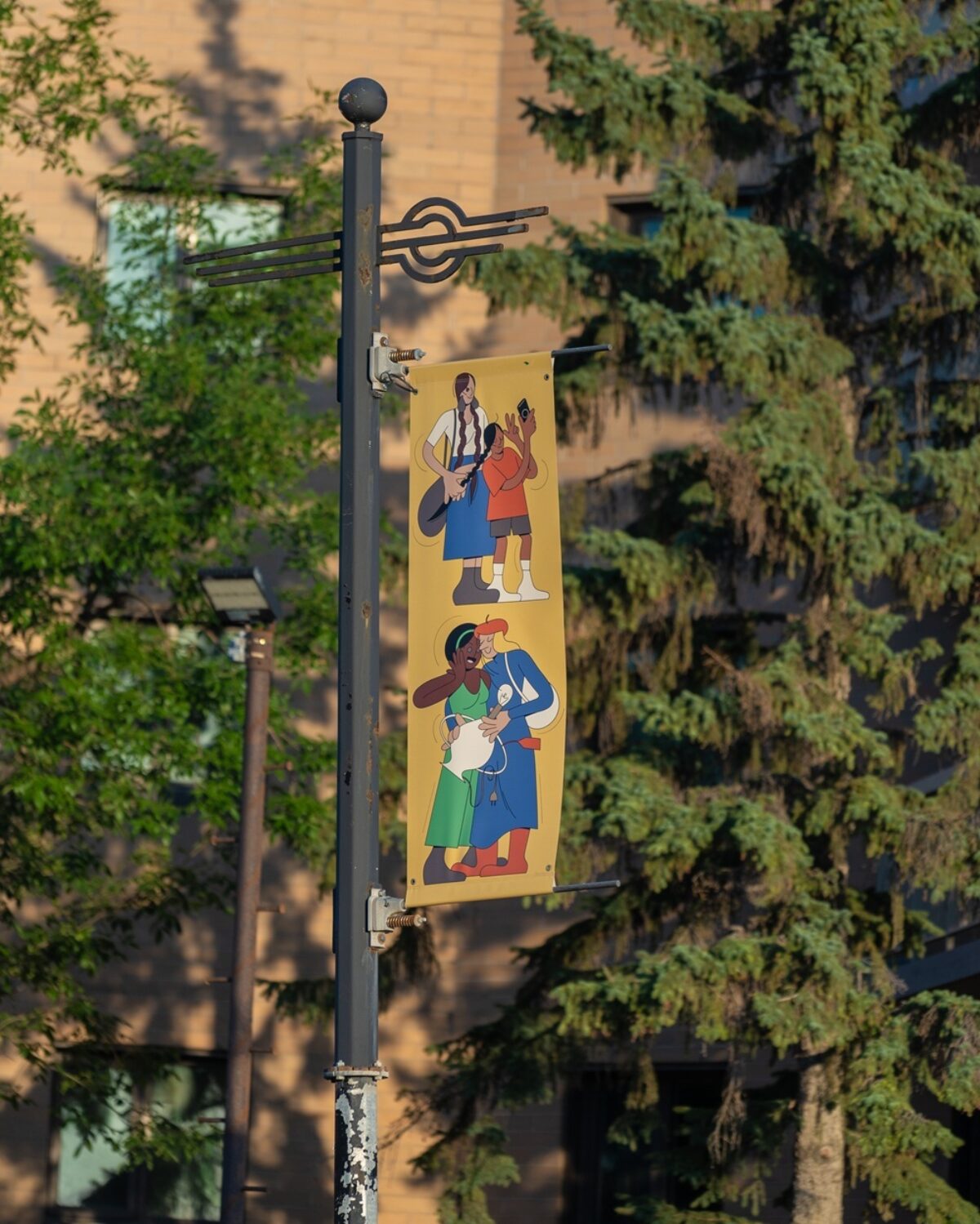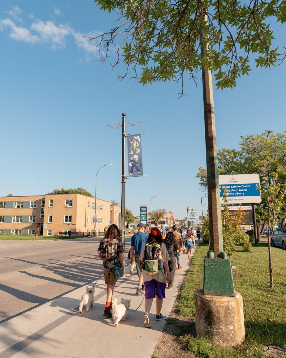 These 22 street banners — designed by Cato Cormier — reflect the energy and spirit of the South Osborne neighbourhood in Winnipeg. The banners will be installed for at least two years as part of a partnership between the Winnipeg Arts Council and the South Osborne BIZ. This project aims to celebrate the unique character of South Osborne — a cozy, walkable area filled with vibrant community life. The artwork is meant to draw people in, encouraging them to explore the area and connect with community.