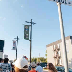 The banners were officially launched with an artist-led walking tour on August 27, 2025.